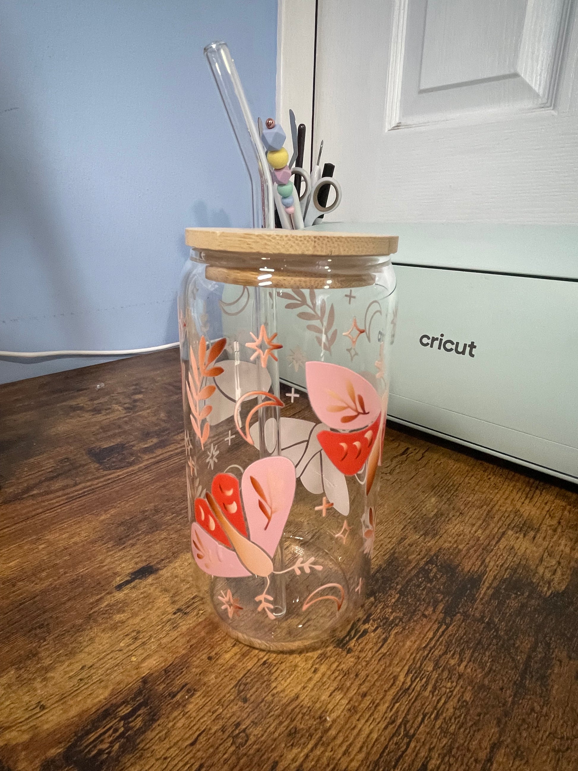 ✨ Meet the overachiever of drinkware: a 16oz glass can with a bamboo lid. It’s like your latte’s new best friend, your iced tea’s forever plus-one, and your cold brew’s hype man. The glass keeps things lookin’ crisp and classy, while the bamboo lid is basically saying, “Yeah, I’m sustainable AND stylish—jealous?” 🌱