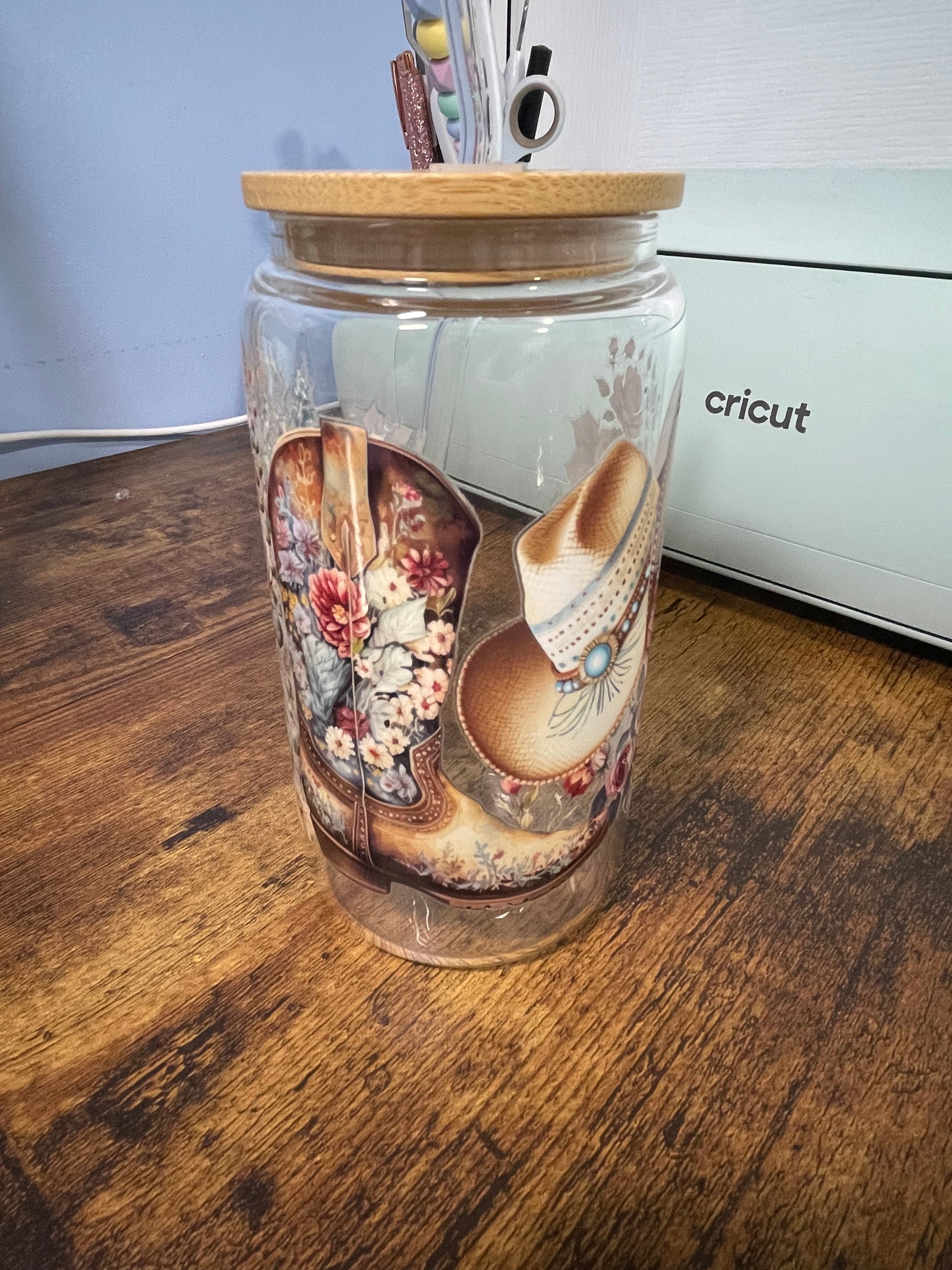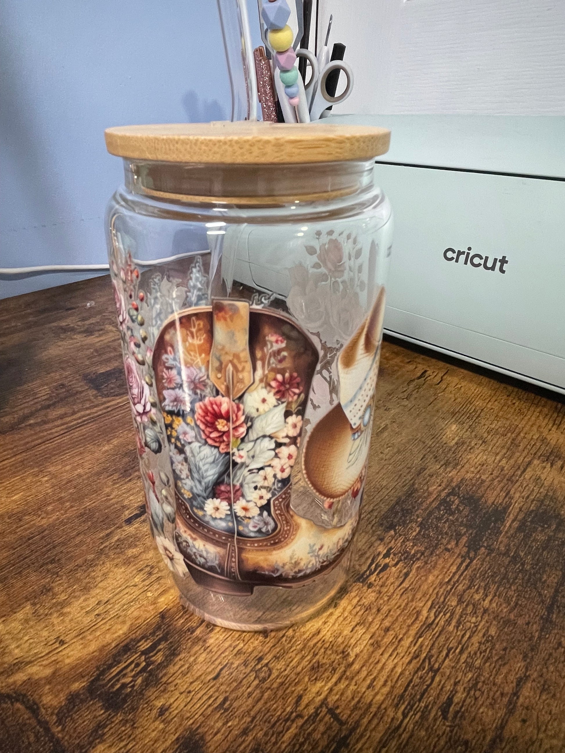✨ Meet the overachiever of drinkware: a 16oz glass can with a bamboo lid. It’s like your latte’s new best friend, your iced tea’s forever plus-one, and your cold brew’s hype man. The glass keeps things lookin’ crisp and classy, while the bamboo lid is basically saying, “Yeah, I’m sustainable AND stylish—jealous?” 🌱