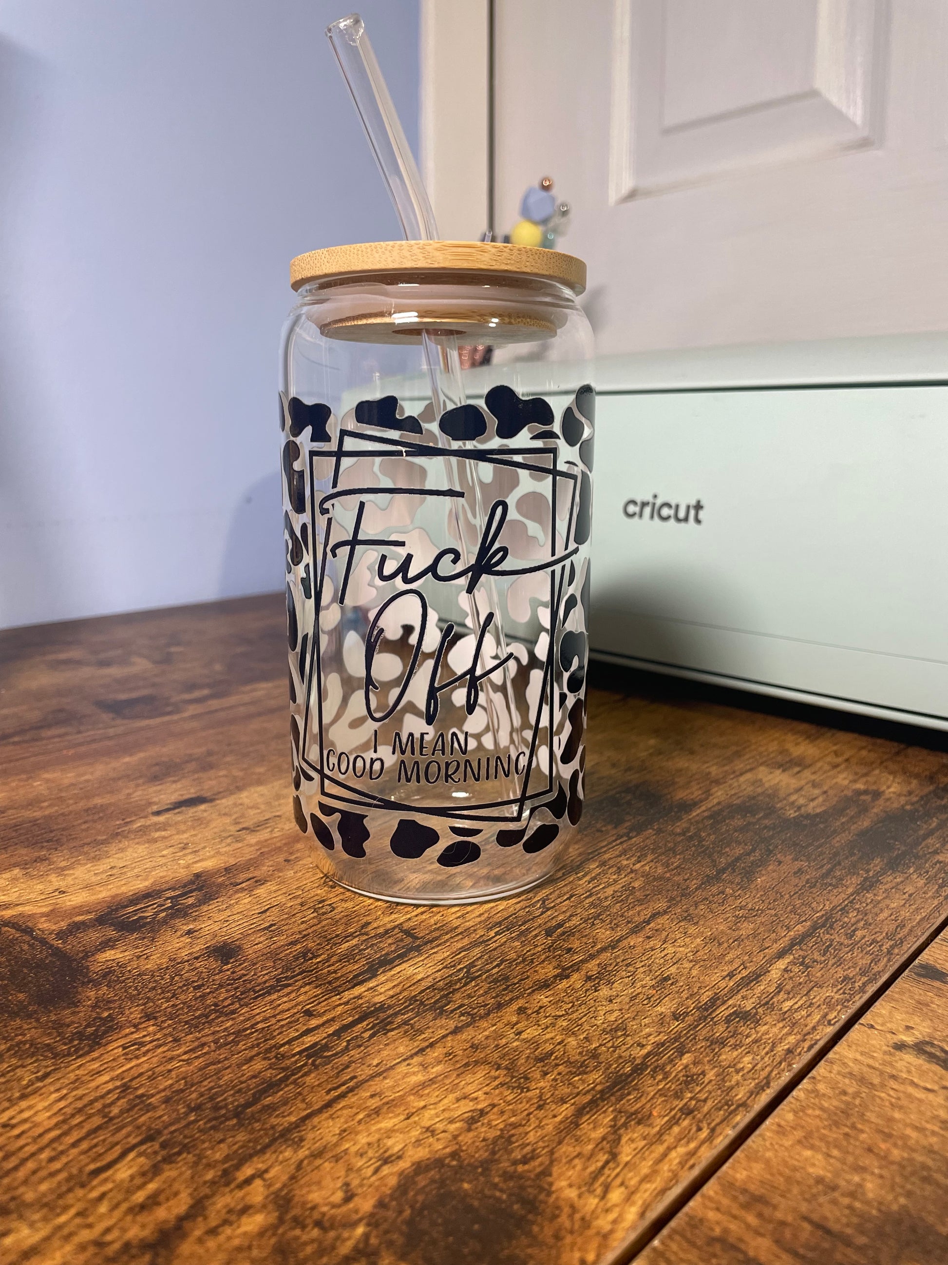 ✨ Meet the overachiever of drinkware: a 16oz glass can with a bamboo lid. It’s like your latte’s new best friend, your iced tea’s forever plus-one, and your cold brew’s hype man. The glass keeps things lookin’ crisp and classy, while the bamboo lid is basically saying, “Yeah, I’m sustainable AND stylish—jealous?” 🌱