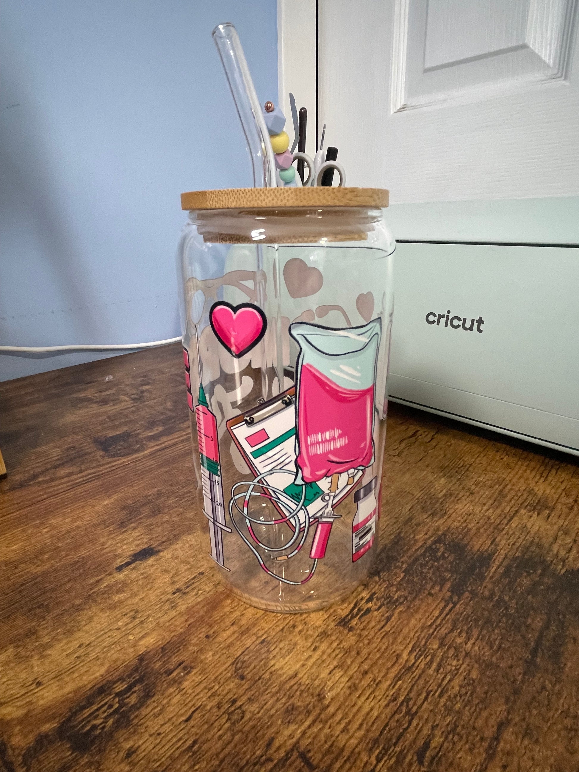 ✨ Meet the overachiever of drinkware: a 16oz glass can with a bamboo lid. It’s like your latte’s new best friend, your iced tea’s forever plus-one, and your cold brew’s hype man. The glass keeps things lookin’ crisp and classy, while the bamboo lid is basically saying, “Yeah, I’m sustainable AND stylish—jealous?” 🌱